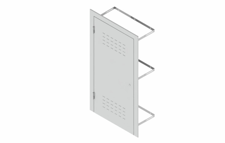 Дверь металлическая негорючая с запорным механизмом предназначена для ограничения доступа к оборудованию связи в бетонной нише зданий с размерами (ШхГхВ) 1000х400х2100. Открывается наружу.