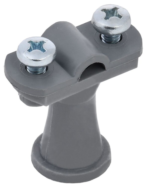 Держатель проводника круглого 6 – 10 мм h = 38 мм пластик серый товарного знака IEK используется для крепления круглых элементов молниезащитной сетки на фасаде здания. Держатель позволяет закрепить проводник на расстоянии 38 мм от фасада. В основании держателя имеется резьба М8.