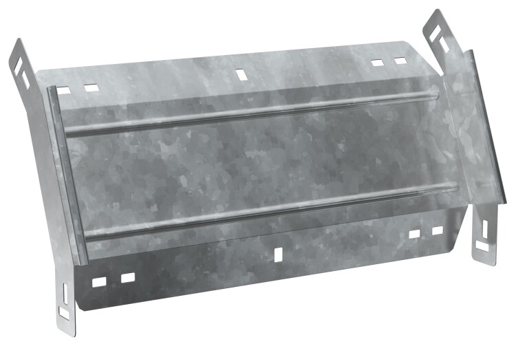 Поворот вертикальный внешний на 45° предназначен для организации поворота кабельной трассы в вертикальной плоскости. Стыковка аксессуара с лотком осуществляется за счёт телескопического соединителя. Подходит для всех типов листовых лотков серии ESCA. Крышка на аксессуар заказывается отдельно. Аксессуар изготовлен из стали оцинкованной методом горячего погружения (защитный слой цинка не менее 55 мкм).