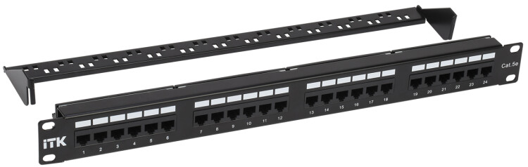 Коммутационные панели или патч-панели являются важнейшей частью любой СКС и IT-инфраструктуры здания и сооружения с большим количеством информационных розеток и терминальных портов конечных пользователей, которые необходимо коммутировать на порты активного сетевого оборудования, размещенного в серверных и распределительных узлах. В зависимости от способа крепления, масштабности кабельной системы, типа сети ITK изготавливает патч-панели для настенного монтажа или монтажа в 19-дюймовый конструктив, по количеству портов: 12-, 24-, 25-, 48-, 50-, категорий: 3 (телефонные), 5E, 6, 6A, в экранированном исполнении и без защитного экрана.