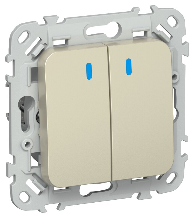 FLITE Выключатель 2-клавишный кнопочный с индикацией 10А ВС12-2-1-ФлШ шампань IEK