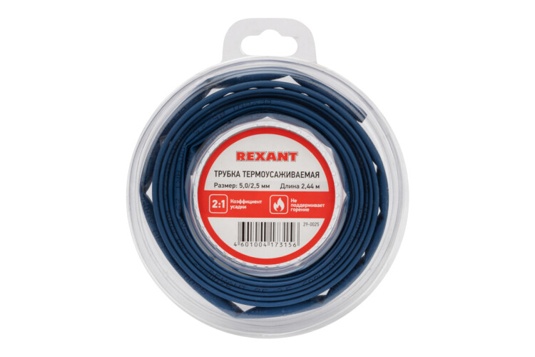 Трубка термоусаживаемая 5,0/2,5мм синяя, ролик 2,44м, REXANT 29-0025