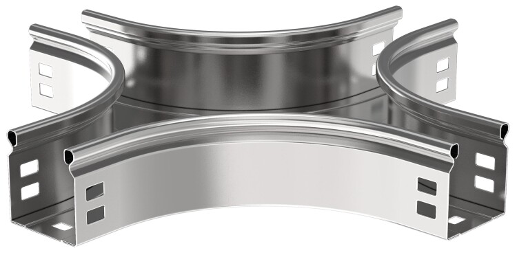 Крестовина плавная предназначена для организации X-образного ответвления кабельной трассы. Крышка аксессуара в комплект не входит. Аксессуар изготовлен из стали горячего цинкования методом Сендзимира (защитный слой цинка не менее 10 мкм).