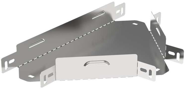 Разветвитель Т-образный горизонтальный предназначен для организации Т-образного ответвления кабельной трассы в горизонтальной плоскости. Аксессуар поставляется в плоском виде, имеет направляющую перфорацию для сгиба и сборки изделия перед установкой. Стыковка аксессуара с лотком осуществляется за счёт телескопического соединителя. Подходит для всех типов листовых лотков серии ESCA. Крышка на аксессуар заказывается отдельно. Аксессуар изготовлен из стали оцинкованной методом Сендзимира (защитный слой цинка не менее 5-10 мкм).
