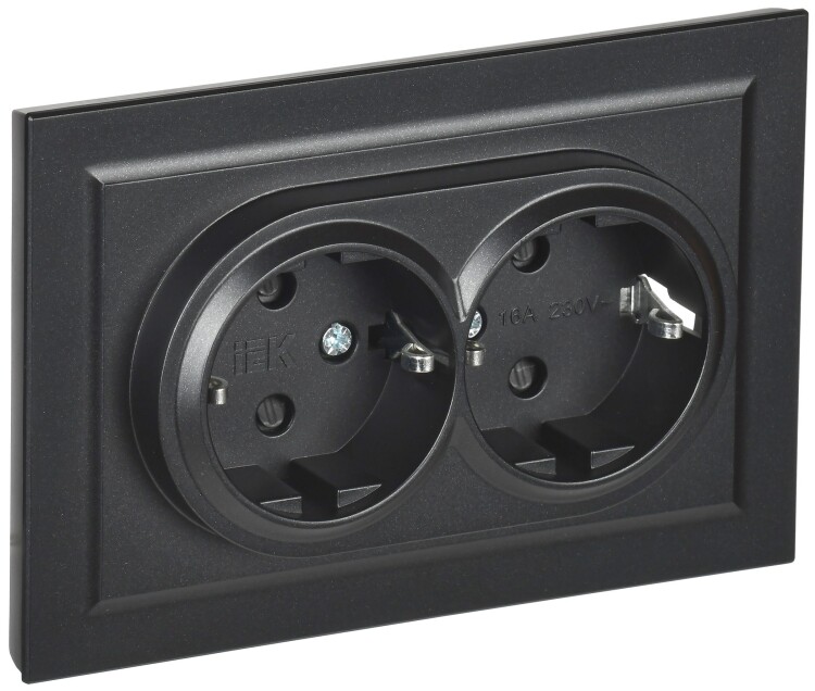 BRITE Розетка 2-местная с заземлением с защитными шторками 16А в сборе РСш12-3-БрЧ черный IEK