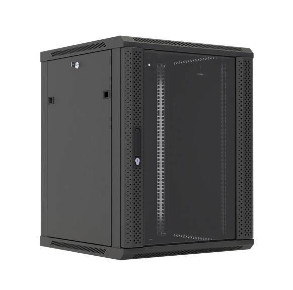 Настенный шкаф WXP-1566-G-RAL9005 рассчитан на установку 19-дюймового оборудования высотой 15U. Габариты 775×600×600 мм и нагрузка до 85 кг позволяют использовать его в ИТ- и телекоммуникационных узлах с более глубокой компоновкой. Корпус из стали выполнен в чёрном цвете, передняя дверь — стеклянная.