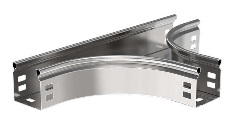Разветвитель Т-образный плавный предназначен для организации Т-образного ответвления кабельной трассы. Крышка аксессуара в комплект не входит. Аксессуар изготовлен из стали горячего цинкования методом Сендзимира (защитный слой цинка не менее 10 мкм).