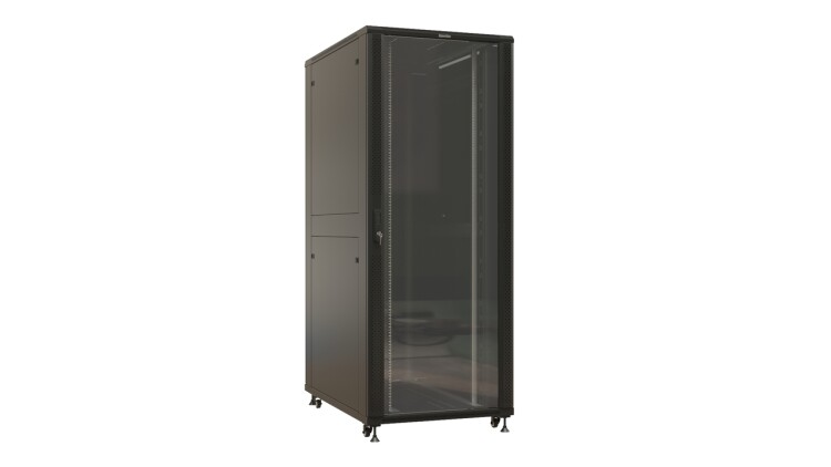 Hyperline TTBR-4282-AS-RAL9004 Шкаф напольный 19-дюймовый, 42U, 2055x800х1200 мм (ВхШхГ), передняя дверь стеклянная, задняя дверь сплошная, ручка с замком, 2 вертикальных кабельных организатора, цвет черный (RAL 9004) (разобранный)
