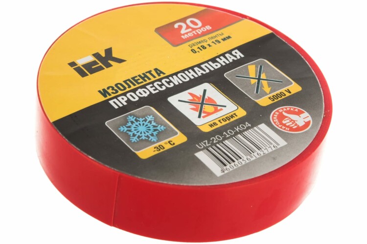Изолента 0,18х19мм, 20м, красная, IEK UIZ-20-10-K04