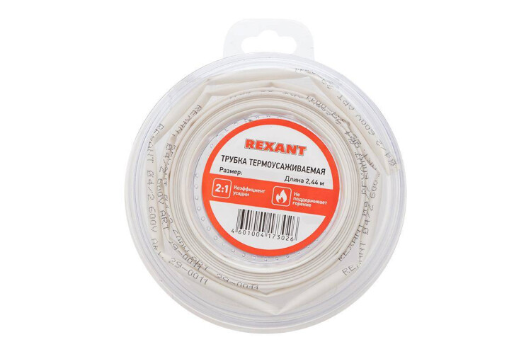 Трубка термоусаживаемая 6,0/3,0мм белая, ролик 2,44м, REXANT 29-0031