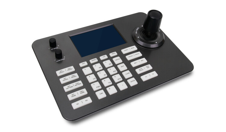 Пульт управления RVi-2NK03 предназначен для управления скоростными поворотными IP-видеокамерами. Пульт оснащен эргономичным джойстиком, что позволяет наиболее эффективно управлять скоростными поворотными камерами. Отображение параметров коммутации и другой служебной информации осуществляется на встроенном экране.