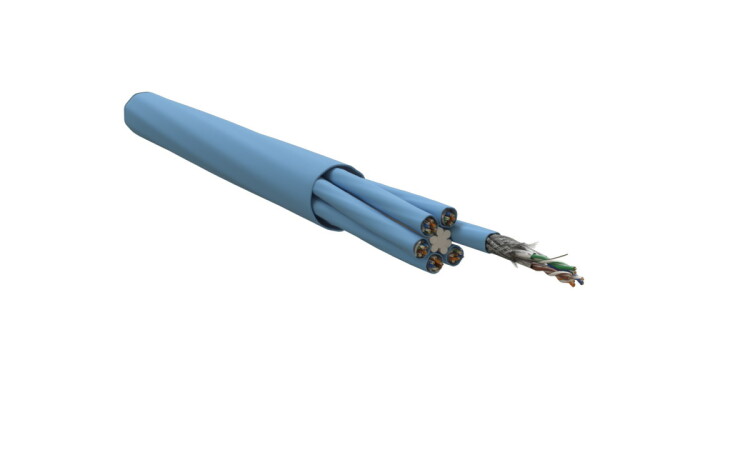 Hyperline SSTP24-C7-SOLID-INDOOR-CMR-BL-305 (305 м) Кабель витая пара, экранированный S/FTP, общий экран оплетка, каждые 4 пары в фольге, категория 7 (1000 MHz), 24 пары 23 AWG, 24х2х0,57 мм, однопров.жилы, PVC, нг(А)-LS, внутр.-20°C – +75°C, синий