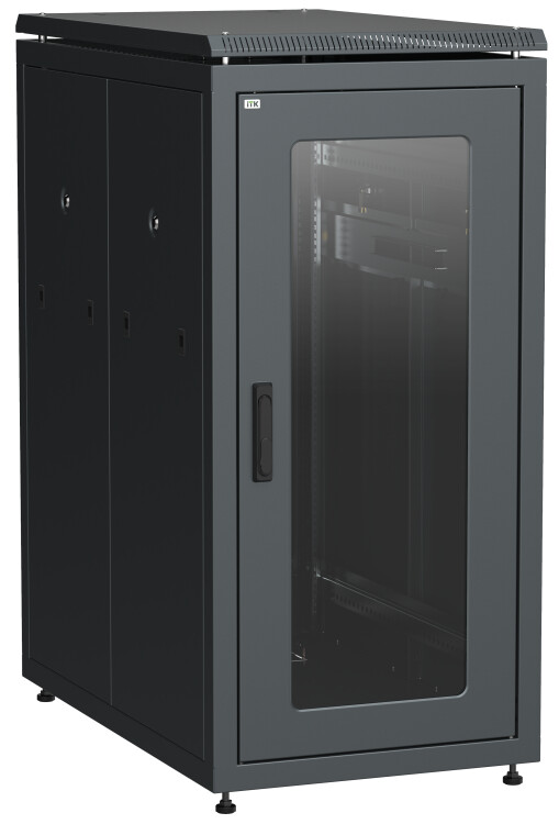 Шкаф напольный 19", 28U, 600х1000мм, стеклянная перед. дверь, черный, LINEA N, ITK LN05-28U61-G