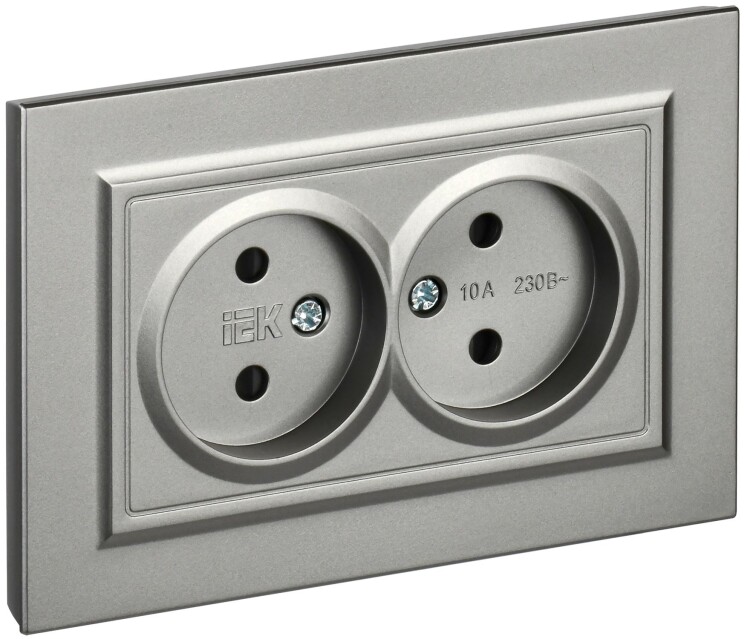 BRITE Розетка 2-местная без заземления с защитными шторками 10А в сборе РСш12-2-БрС сталь IEK