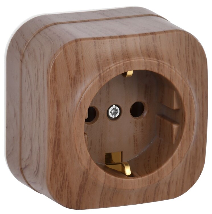 GLORY Розетка 1-местная для открытой установки с заземлением без защитных шторок 16А РС20-3-ХД дуб I