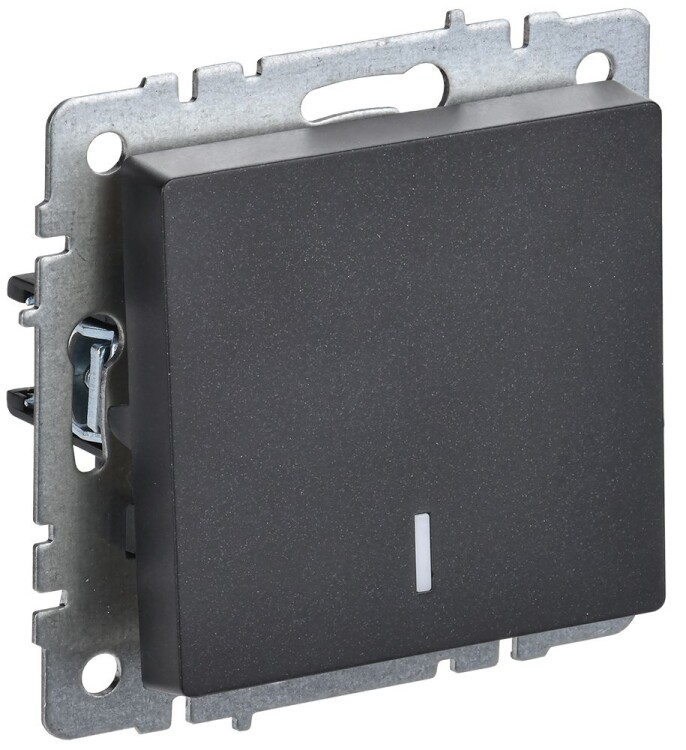 BRITE Выключатель 1-клавишный с индикацией 10А ВС10-1-1-БрЧ черный IEK