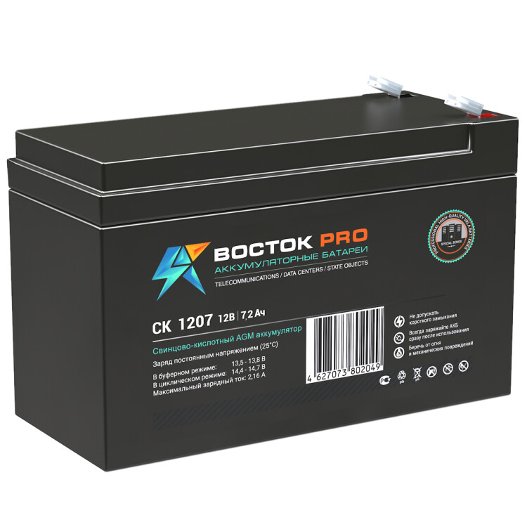 Батарея аккумуляторная CK-1207, (12В, 7.2Ач), Восток PRO 4614050020004