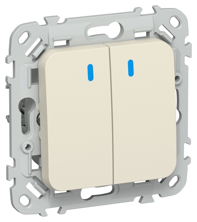 FLITE Выключатель 2-клавишный с индикацией 10А ВС12-1-1-ФлСл сливочный IEK