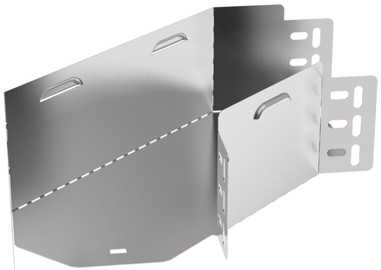 Поворот горизонтальный на 90° предназначен для организации поворота кабельной трассы в горизонтальной плоскости. Аксессуар поставляется в плоском виде, имеет направляющую перфорацию для сгиба и сборки изделия перед установкой. Стыковка аксессуара с лотком осуществляется за счёт телескопического соединителя. Подходит для всех типов листовых лотков серии ESCA. Крышка на аксессуар заказывается отдельно. Аксессуар изготовлен из стали оцинкованной методом Сендзимира (защитный слой цинка не менее 5-10 мкм).