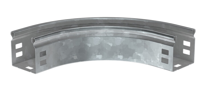 Поворот на 90° плавный предназначен для организации горизонтального поворота кабельной трассы на 90°. Крышка аксессуара в комплект не входит. Аксессуар изготовлен из стали с цинковым покрытием, нанесенным погружением изделий в расплав цинка (защитный слой цинка не менее 55 мкм).