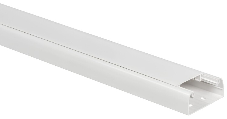Профиль 80×50 мм представляет собой корпус кабель-канала с крышкой длиной 2 м. Предназначен для прокладки силовых и слаботочных проводов и кабелей, линий связи, телекоммуникационных кабелей и/или для размещения электроустановочных изделий стандарта 45×45. При необходимости можно установить дополнительную съёмную перегородку (арт. 010582). Цвет: белый.
