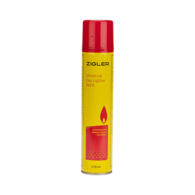 Газ в металлическом баллоне предназначен для заправки различных моделей зажигалок и других портативных газовых приборов, таких как обогреватели, светильники, паяльные лампы, газовые плиты и т.п. В баллоне объемом 270 мл (110 гр) содержится газ, состоящий из пропана, бутана и очищенного изобутана. Смесь не содержит примесей и несгораемых частиц, что обеспечивает беспрепятственное прохождение газа, защищая газовые устройства от поломки. Содержимое баллончика не имеет посторонних запахов. В комплектацию входят 5 сменных насадок, которые хранятся в защитном колпачке и подходят для заправки разных видов портативных газовых устройств. Перед заправкой зажигалки или другого портативного газового прибора следует снять с баллона колпачок и выбрать подходящую насадку, затем необходимо перевернуть баллон заправочной головкой вниз и вставить сопло в отверстие для заправки. Наполняя газовое устройство, нужно несколько раз нажать на баллон вертикально вниз.