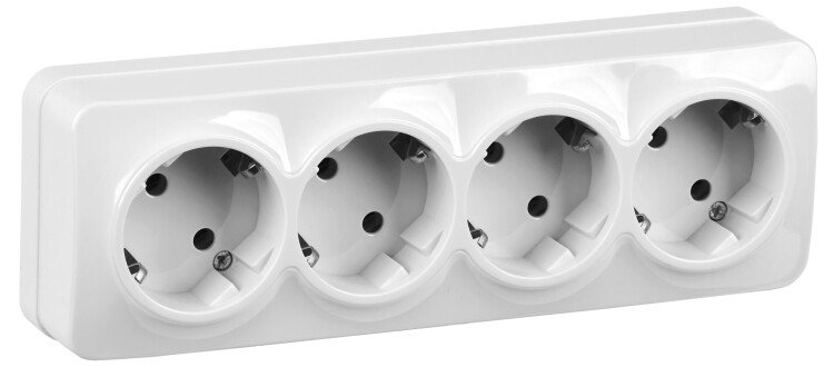РС24-3-ХБ Розетка 4местн. с з/к о/у 16А GLORY белый, IEK ERH41-K01-16