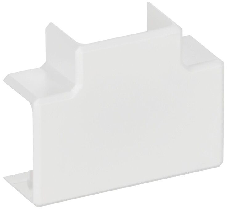 Угол Т-образный позволяет выполнить Т-образное соединение двух кабель-каналов, обеспечивает степень защиты всей системы IP40, улучшает внешний вид, закрывая место разреза. Т-образный угол закрепляется на корпусе кабель-канала простым защелкиванием. Цвет: белый.