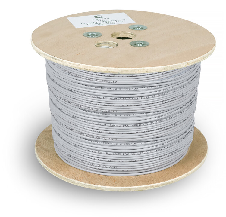 Однопарный кабель симметричной парной скрутки предназначен для передачи сигналов с частотой до 100 МГц. Применяется в структурированных кабельных системах (локальных компьютерных сетях) и системах широкополосного доступа (ШПД) и предназначен для изготовления коммутационных шнуров (патч-кордов). Кабель выполнен в неэкранированном исполнении U/UTP и предназначен для прокладки внутри зданий. Диаметр проводников составляет 26 AWG, конструкция 7х0,16 мм. Внешняя оболочка выполнена из не распространяющего горение ПВХ. На внешней оболочке кабеля нанесены метровые метки длины кабеля. Кабель обладает отличными характеристиками при разумной цене, что делает его оптимальным вариантом для построения сетей в проектах. Кабель поставляется на фанерном барабане, с намоткой 500м. Поддерживаемые приложения: Ethernet (10BASE-T) 10 Мбит/с, ATM-52 Мбит/с, 100VG-AnyLAN, Token Ring, Firewire, другие приложения кабельных систем категории 5.