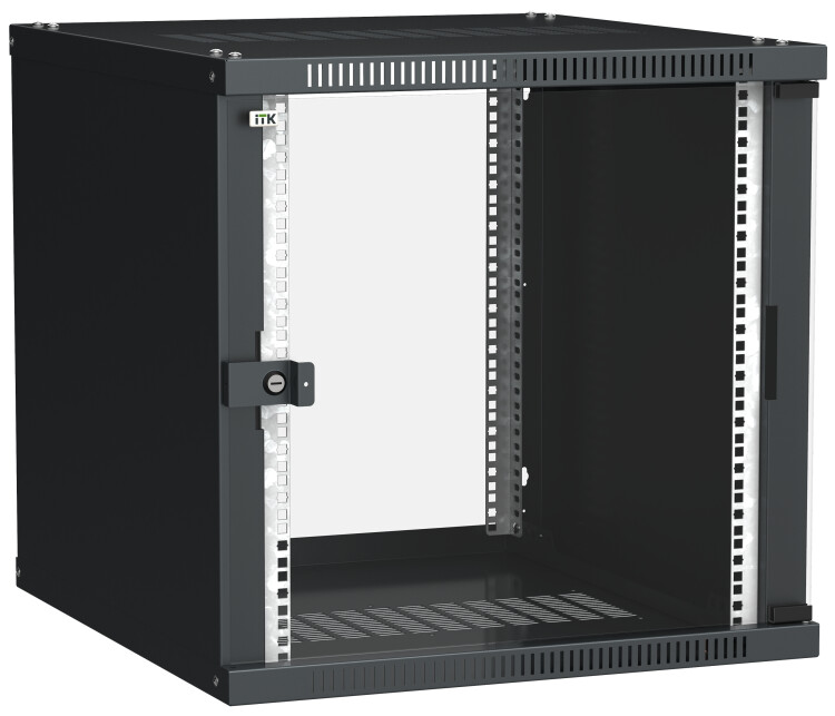 Шкаф настенный 19", 9U, 600х450мм, стекл. дверь, черный, LINEA WE, ITK LWE5-09U64-GF