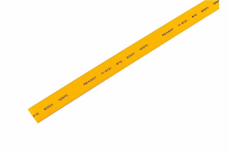 Термоусаживаемая трубка 10,0/5,0мм, желтая, упаковка 50шт. по 1м, REXANT 21-0002