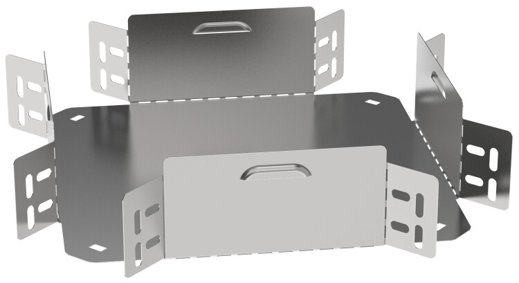 Крестовина предназначен для организации X-образного разветвления кабельной трассы в горизонтальной плоскости. Аксессуар поставляется в плоском виде, имеет направляющую перфорацию для сгиба и сборки изделия перед установкой. Стыковка аксессуара с лотком осуществляется за счёт телескопического соединителя. Подходит для всех типов листовых лотков серии ESCA. Крышка на аксессуар заказывается отдельно. Аксессуар изготовлен из стали оцинкованной методом Сендзимира (защитный слой цинка не менее 5-10 мкм).