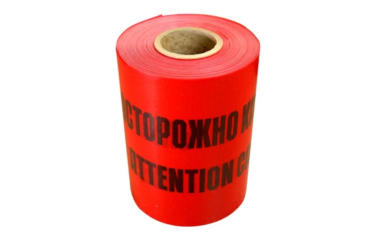 Предназначена для предупреждения механических повреждений кабельных линий при проведении земляных работ. Укладывается в траншеи на расстоянии 30-40 см над кабелем или защитными полиэтиленовыми трубами с электрическим кабелем внутри. Производится из полиэтилена ПВД. Имеет надпись «ОСТОРОЖНО КАБЕЛЬ», выполненную чёрным цветом на красном фоне. Толщина ленты – 300мкм. Цветовая гамма и текст могут быть изменены по желанию заказчика.