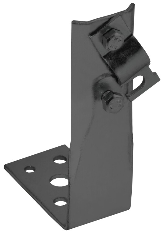 Держатель угловой с болтовым зажимом предназначен для монтажа проводника на горизонтальные, вертикальные или наклонные поверхности. Монтируется на поверхности при помощи саморезов. Зажим проводника происходит при помощи болтового соединения. Материал корпуса - сталь с термодиффузионным цинковым покрытием.