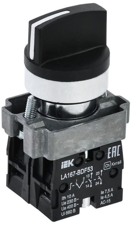 Переключатель LA167-BDF53 на 3 положения 2NO черный IEK