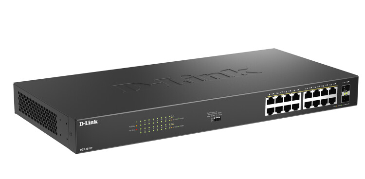 Коммутатор DGS-1018P оснащен 16 портами 10/100/1000Base-T с поддержкой PoE, 2 портами 1000Base-X SFP и DIP-переключателем с возможностью конфигурирования. Коммутатор рекомендуется для использования в сетях SOHO и предприятий малого и среднего бизнеса (SMB). Поддержка PoE позволяет пользователям легко подключать и подавать питание по Ethernet-кабелям на такие устройства, как PoE-совместимые беспроводные точки доступа, сетевые камеры или IP-телефоны.