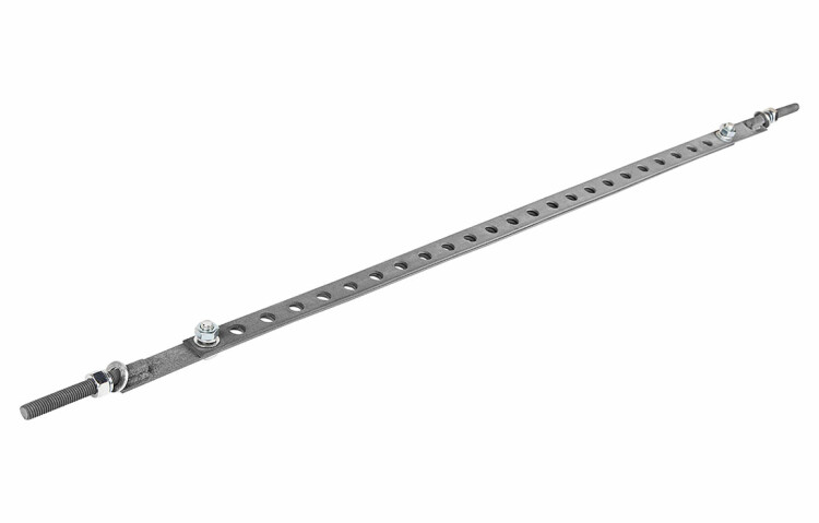 С помощью хомута осуществляется крепление к столбовым опорам устройств подвески муфт, кронштейнов для крепления муфт, а также каркасов для намотки запасов подвесных ОК. Хомут используется также для крепления защитного кожуха муфт МОГ-Т. Хомут, состоящий из двух полос с большим количеством отверстий, собирается с помощью двух болтов и гаек и огибается вокруг железобетонной опоры. Величина зоны обхвата опоры регулируется с помощью перемещения полос хомута друг относительно друга. При необходимости излишние части отламываются. Хомуты рассчитаны на столбовые опоры диаметрами 150–650 мм.