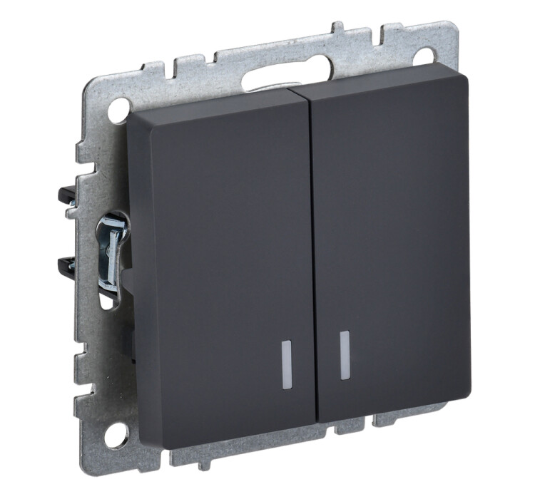 Выключатель 2-клавишный с индикацией, ВС10-2-1-БрГ, графит, IEK BR-V20-1-10-K53