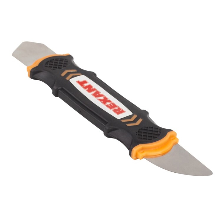Двухсторонняя гибкая лопатка REXANT RA-08 предназначена для вскрытия корпусов и удаления дисплеев с портативной техники, такой как: смартфоны, планшеты, ноутбуки, коммуникаторы, PlayStation, продукция Apple, устройства, работающие на платформе Android. Ножи изготовлены из прочного пластика, поэтому безопасны для компонентов устройств. Разная форма лезвий позволяет комфортно производить необходимые работы. Рукоятка удобной формы комфортно ложится в ладонь. Для безопасного, удобного хранения и транспортировки инструмента предусмотрены чехлы для лезвий.