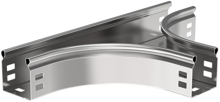 Разветвитель Т-образный плавный предназначен для организации Т-образного ответвления кабельной трассы. Крышка аксессуара в комплект не входит. Аксессуар изготовлен из стали горячего цинкования методом Сендзимира (защитный слой цинка не менее 10 мкм).