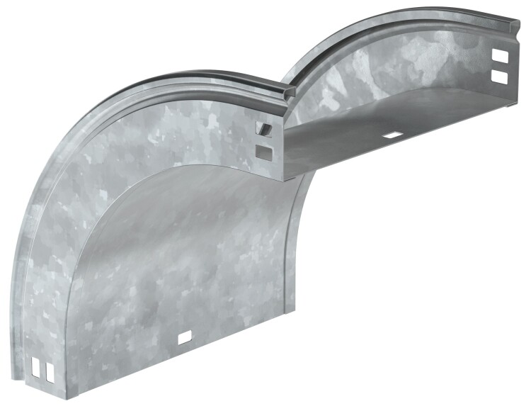 Поворот на 90° вертикальный внешний плавный предназначен для организации вертикального внешнего поворота кабельной трассы на 90°. Крышка аксессуара в комплект не входит. Аксессуар изготовлен из стали с цинковым покрытием, нанесенным погружением изделий в расплав цинка (защитный слой цинка не менее 55 мкм).
