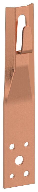 Держатель прямой с безболтовым зажимом предназначен для монтажа круглого проводника на парапетах и фасадах зданий. Монтируется на поверхности при помощи метизов. Фиксация проводника происходит при помощи зажима в «язычке» держателя. Материал корпуса - медь.