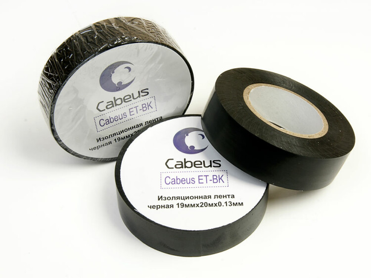 Изолента 19х0,13мм, 20м, черная, Cabeus ET-BK