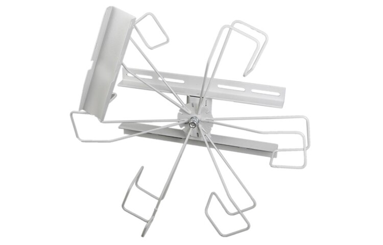 Применяется для хранения запаса подвесного оптического кабеля. Рекомендуется для установки на опорах ЛЭП (до 20 кВ), городского электрохозяйства (уличного освещения, наземного электротранспорта). Ось катушки фиксируется на кронштейне, который устанавливается на опору. Намотка кабеля осуществляется вращением катушки вместе с муфтой. Муфта крепится на специально установленный кронштейн. Устройство выполнено из стального прутка, благодаря чему имеет значительно меньший вес и повышенную жесткость конструкции по сравнению с аналогами.