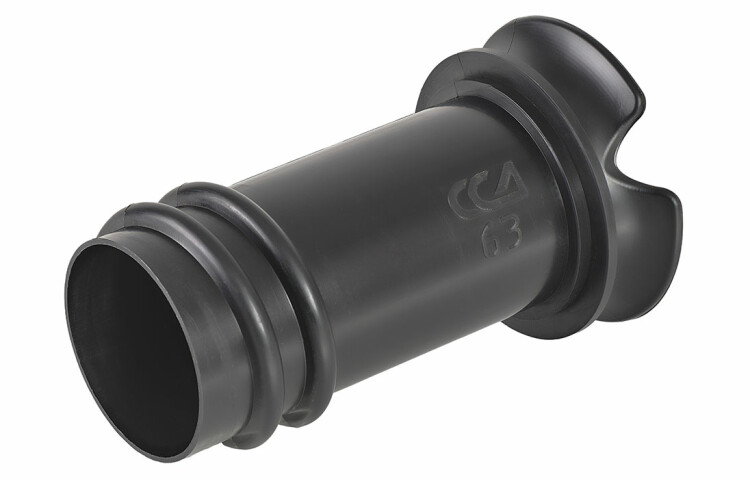 Предназначен для герметичного ввода трубы полимерной жесткой гофрированной спиральной (ССД-Пайп) в пластиковые кабельные колодцы путём её надёжного резьбового крепления к стенке колодца.Адаптер представляет собой полый цилиндр с опорным раструбом с одной стороны корпуса и наружной приемочной резьбой с другой стороны. Ввод трубы в колодец осуществляется через отверстие в стенке колодца, которое прорезаются в нужном месте с помощью кругового регулируемого сверла с резцом («балеринка»). Адаптер устанавливается в отверстие с внутренней стороны корпуса колодца и резьбовой частью вкручивается во внутренний диаметр соединительной муфты трубы, пристыкованной к отверстию в стенке колодца. Использование адаптеров герметичного ввода позволяет без применения сварки в полевых условиях обеспечить прочное на разрыв крепление трубы к стенке колодца и герметизировать ввод спиральной гофрированной трубы в смотровые устройства кабельной канализации.Степень герметизации соединения без использования герметизирующей прокладки-IP54