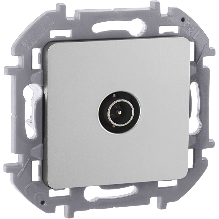 Розетка телевизионная для скрытого монтажа Inspiria, оконечная для схемы "шлейф", затухание 10дБ, 4-862МГц, цвет "Алюминий". Предназначена для подключения нескольких ТВ приемников к антенне, используется в схеме "шлейф" и устанавливается в конце линии.