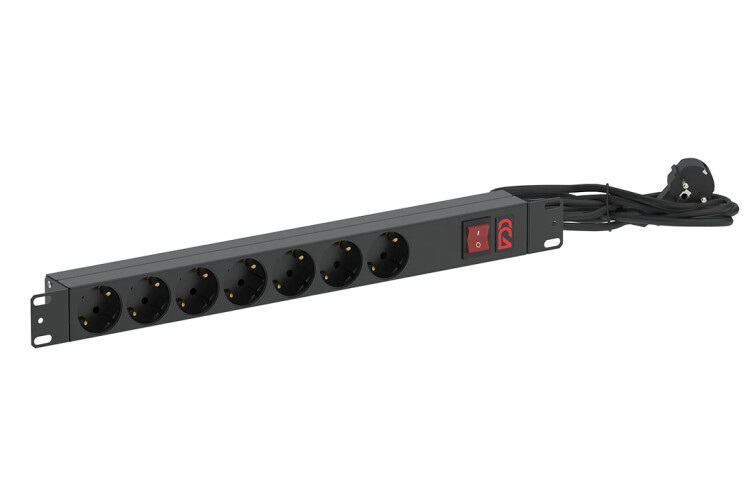 Блок розеток БР-7SCH-16А-Ш-3SCH 7 розеток Schuko,выключатель 2 положения с подсветкой, со шнуром 3м