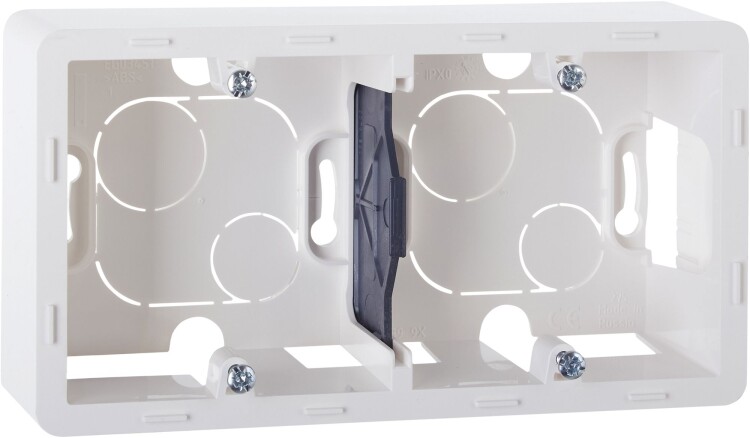 Коробка для накладного монтажа Inspiria, 2 поста, цвет "Белый". Коробка предназначена для накладного монтажа механизмов серии Inspiria и позволяет установить 2 механизма из данной коллекции. Конструкция коробки позволяет подключить провода наиболее удобным способом.
