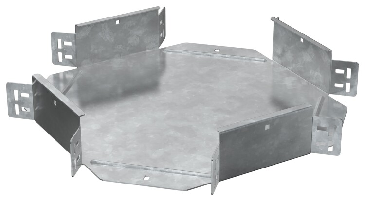 Крестовина предназначен для организации X-образного разветвления кабельной трассы в горизонтальной плоскости. Стыковка аксессуара с лотком осуществляется за счёт телескопического соединителя. Подходит для всех типов листовых лотков серии ESCA. Крышка на аксессуар заказывается отдельно. Аксессуар изготовлен из стали оцинкованной методом горячего погружения (защитный слой цинка не менее 55 мкм).