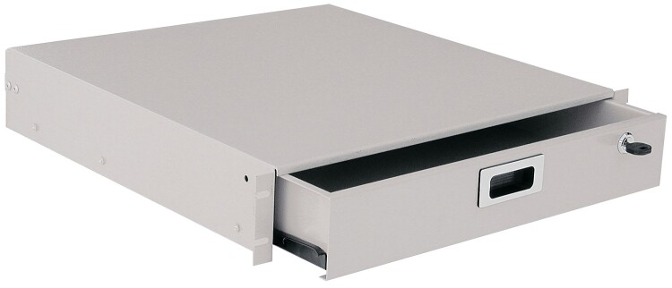 Ящик выдвижной стандарта 19" устанавливается на 19-ти дюймовые монтажные профили и предназначен для хранения документов, инструментов и прочих принадлежностей, необходимых для администрирования и обслуживания телекоммуникационного оборудования установленного в серверный шкаф 19". Ящик имеет высоту 2U и оснащен выдвижным телескопическим механизмом на основе роликовых кассет, а также замком с индивидуальным ключом.